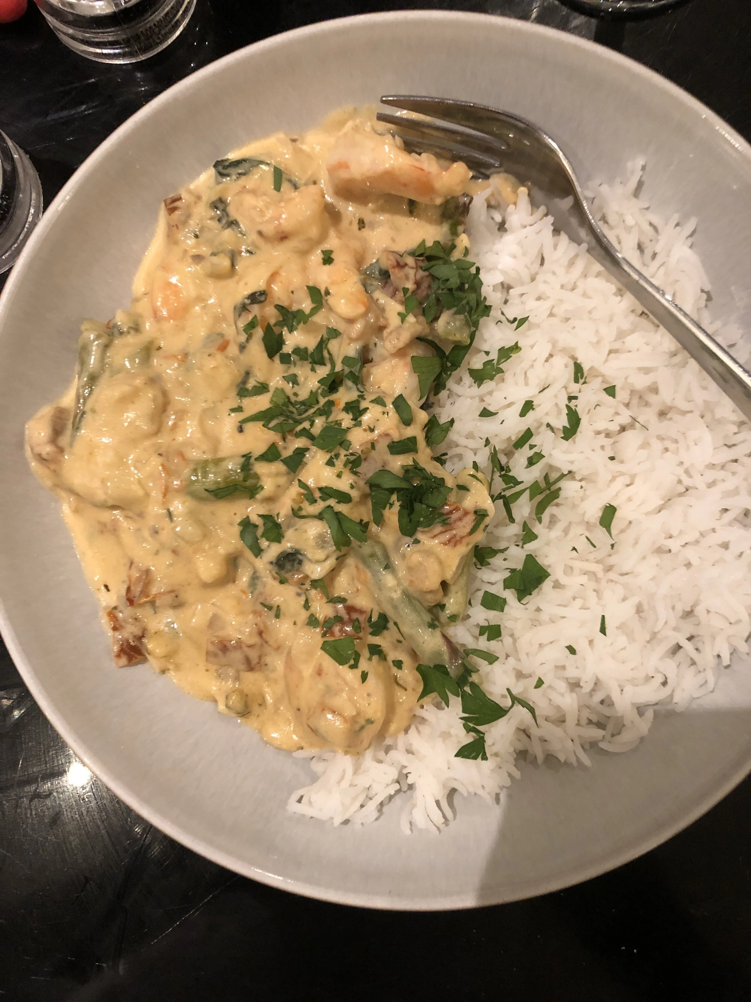 I am happy cooking meat, fish, vegetarian and vegan. Having taken part in Veganuary this year, my diet is now primarily vegan and I pride myself on serving tasty vegan dishes. Some examples you can see in the photos include Pad Thai with prawns, steak pie, black bean, spinach and sweetcorn enchiladas, chicken Makhani, garlic chilli prawns with green beans, Thai green curry with tofu, Turkish kofte with bulgur wheat; mushroom Bourguignon. Prices include all accompaniments.